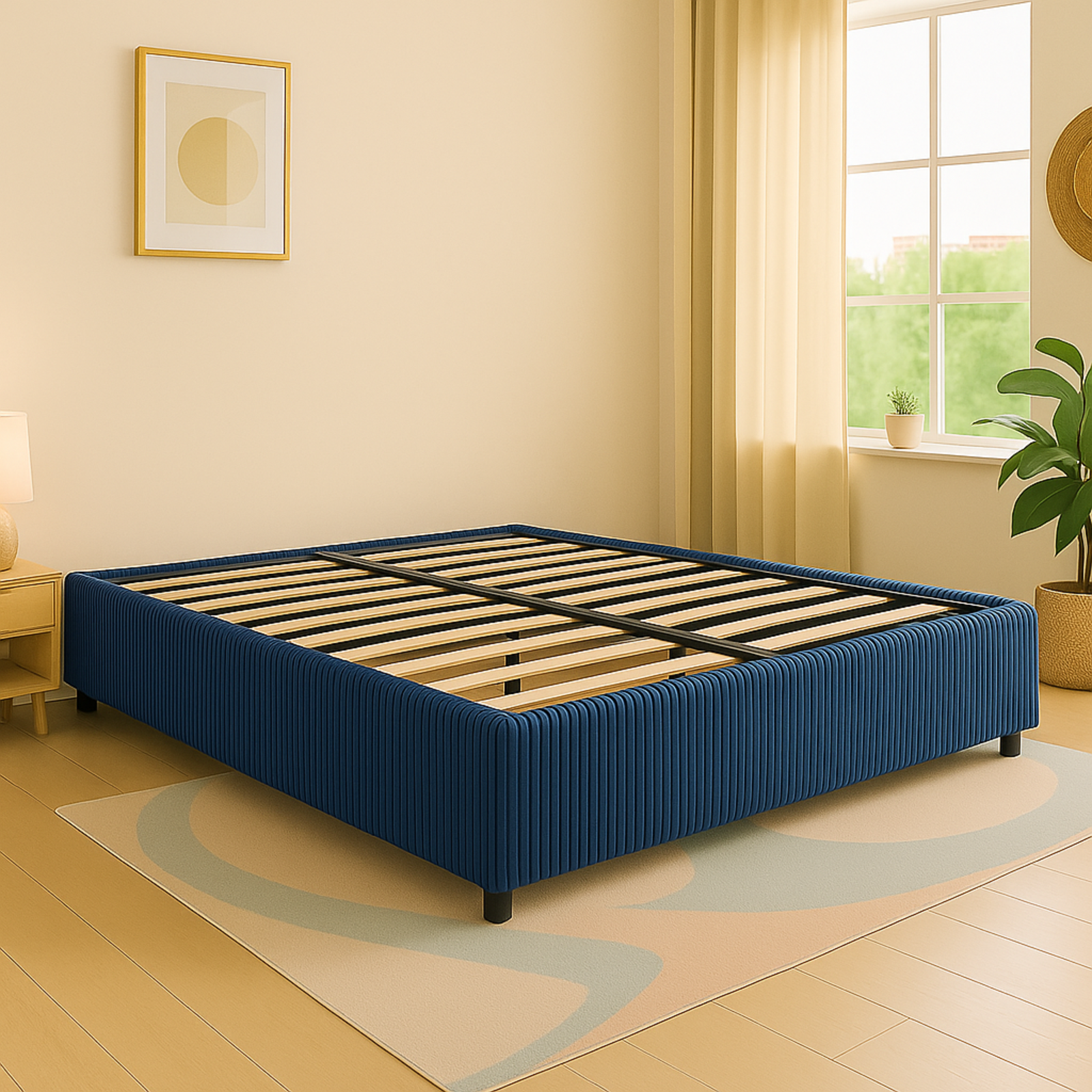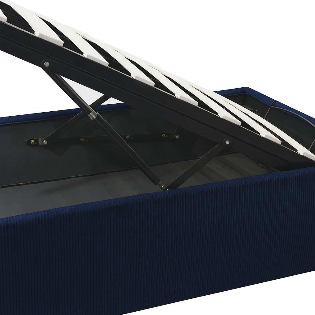 Lit coffre Cancun Bleu Nuit | Sommier à lattes inclus | Robuste et Large Angle d’Ouverture