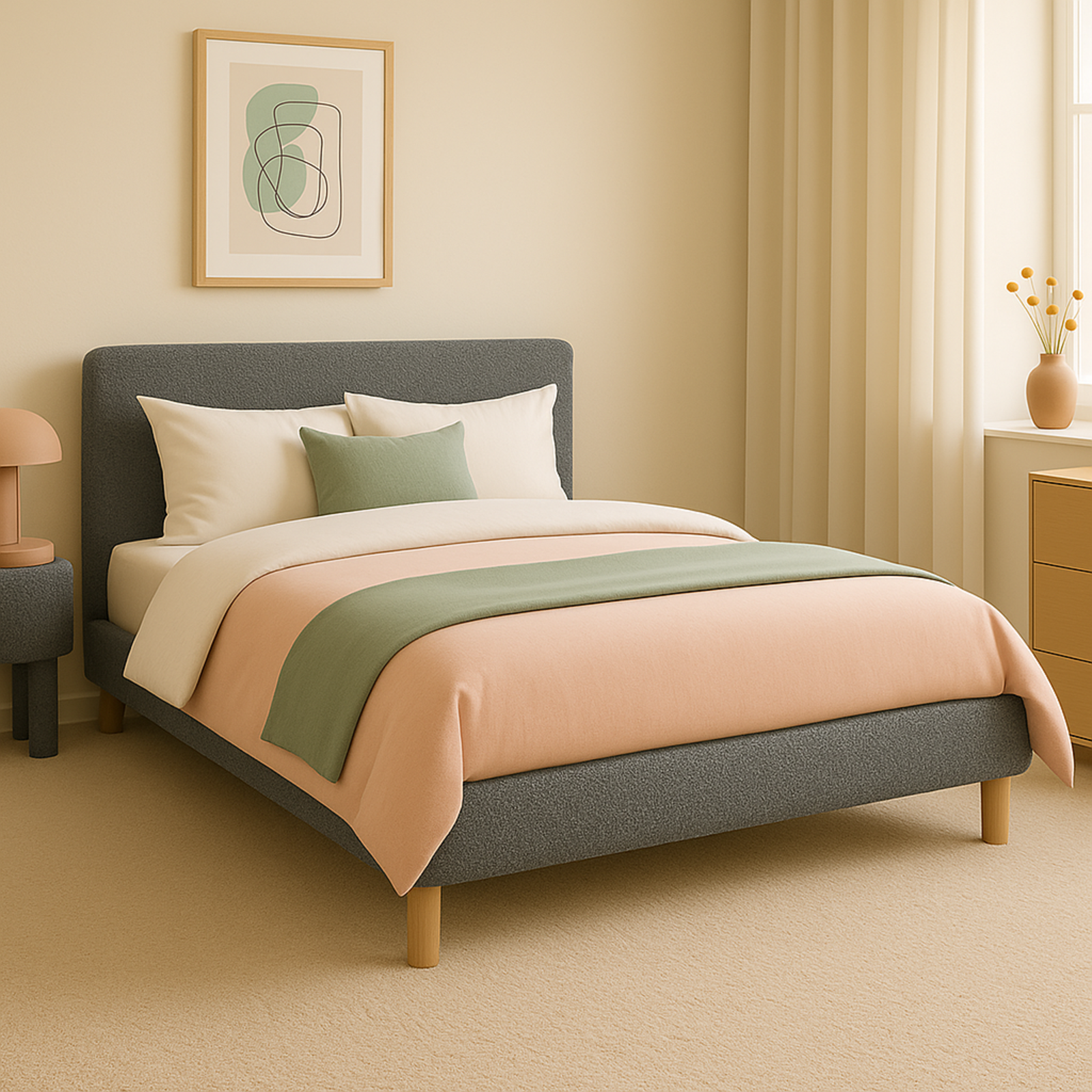 - Design élégant et moderne : Le revêtement en tissu et la structure au style scandinave apportent une touche épurée et raffinée à votre chambre, créant une ambiance chaleureuse et contemporaine.