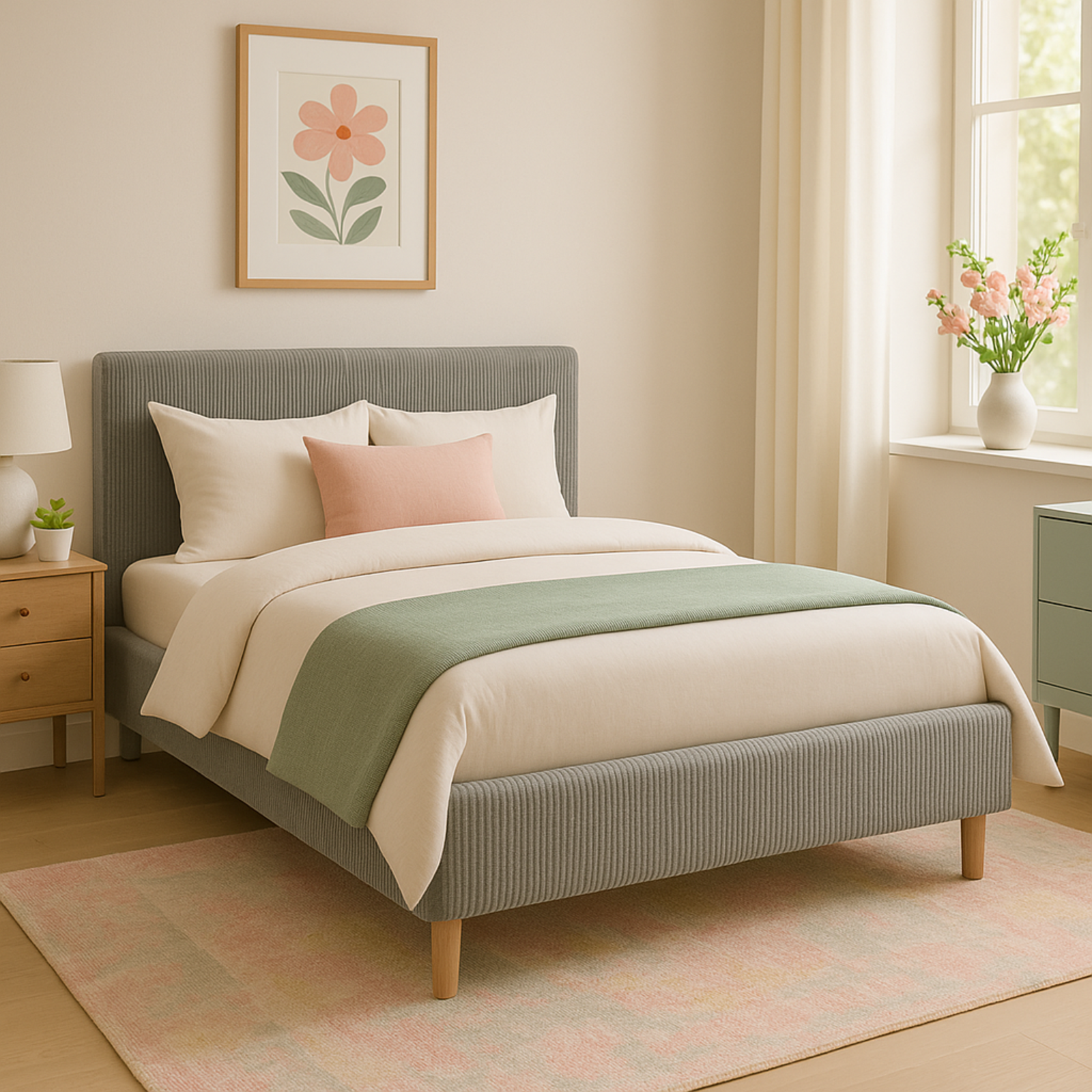 - Design élégant et moderne : Le revêtement en tissu et la structure au style scandinave apportent une touche épurée et raffinée à votre chambre, créant une ambiance chaleureuse et contemporaine.